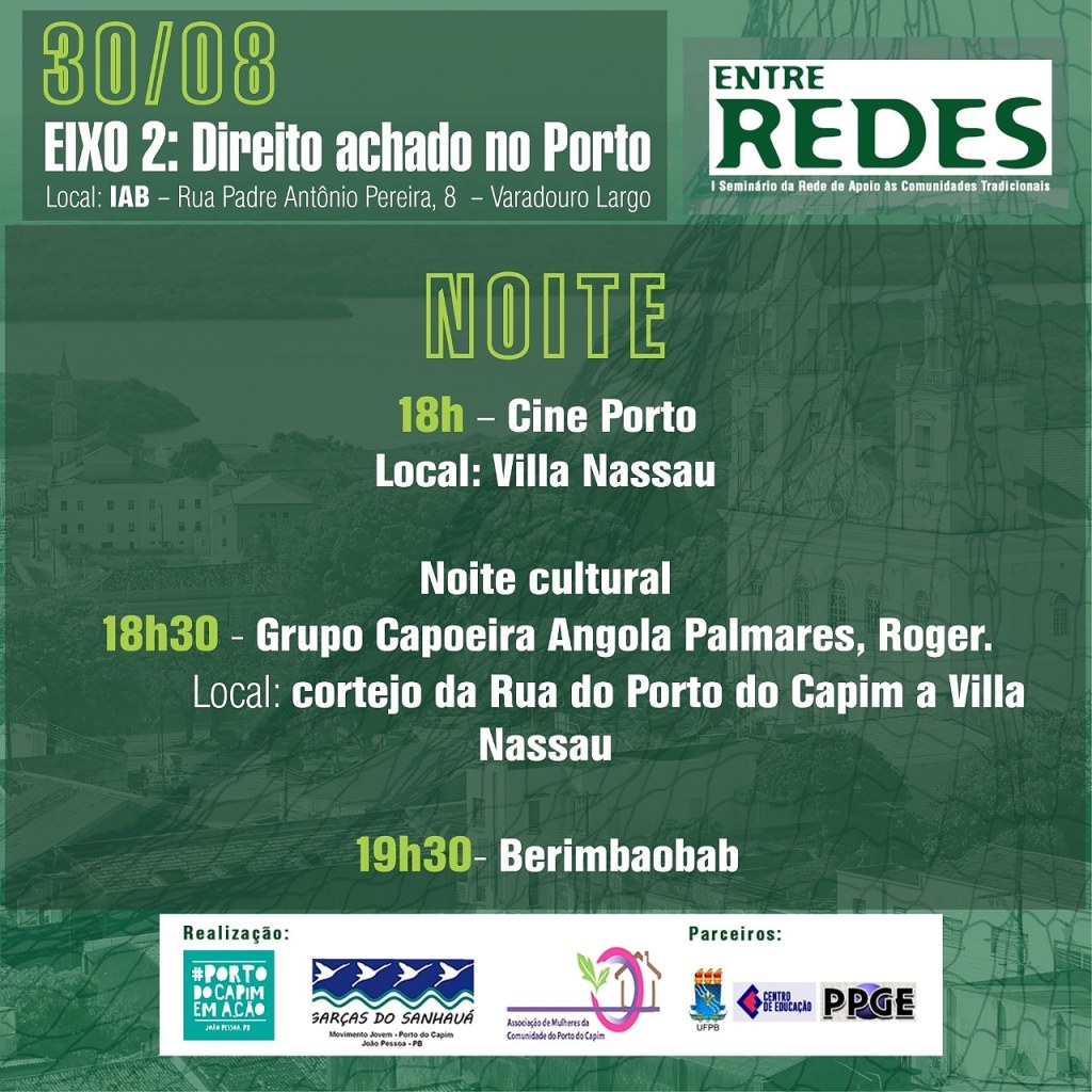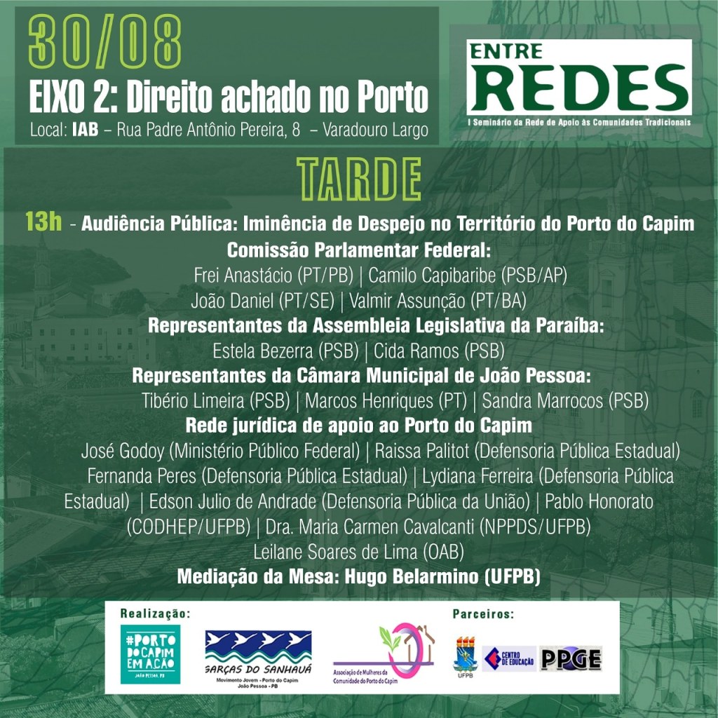 A existência desse diálogo e sua retomada só foi possível pela mobilização da comunidade, pela intermediação do Ministério Público Federal e pelo surgimento espontâneo de uma rede de apoio ao Porto do Capim. É essa rede, liderada pela Associação de Mulheres do Porto do Capim, pelas Garças do Sanhauá e pelo Movimento Porto do Capim em Ação, que está realizando o “Entre Redes: I Seminário de apoio às Comunidades Tradicionais”.